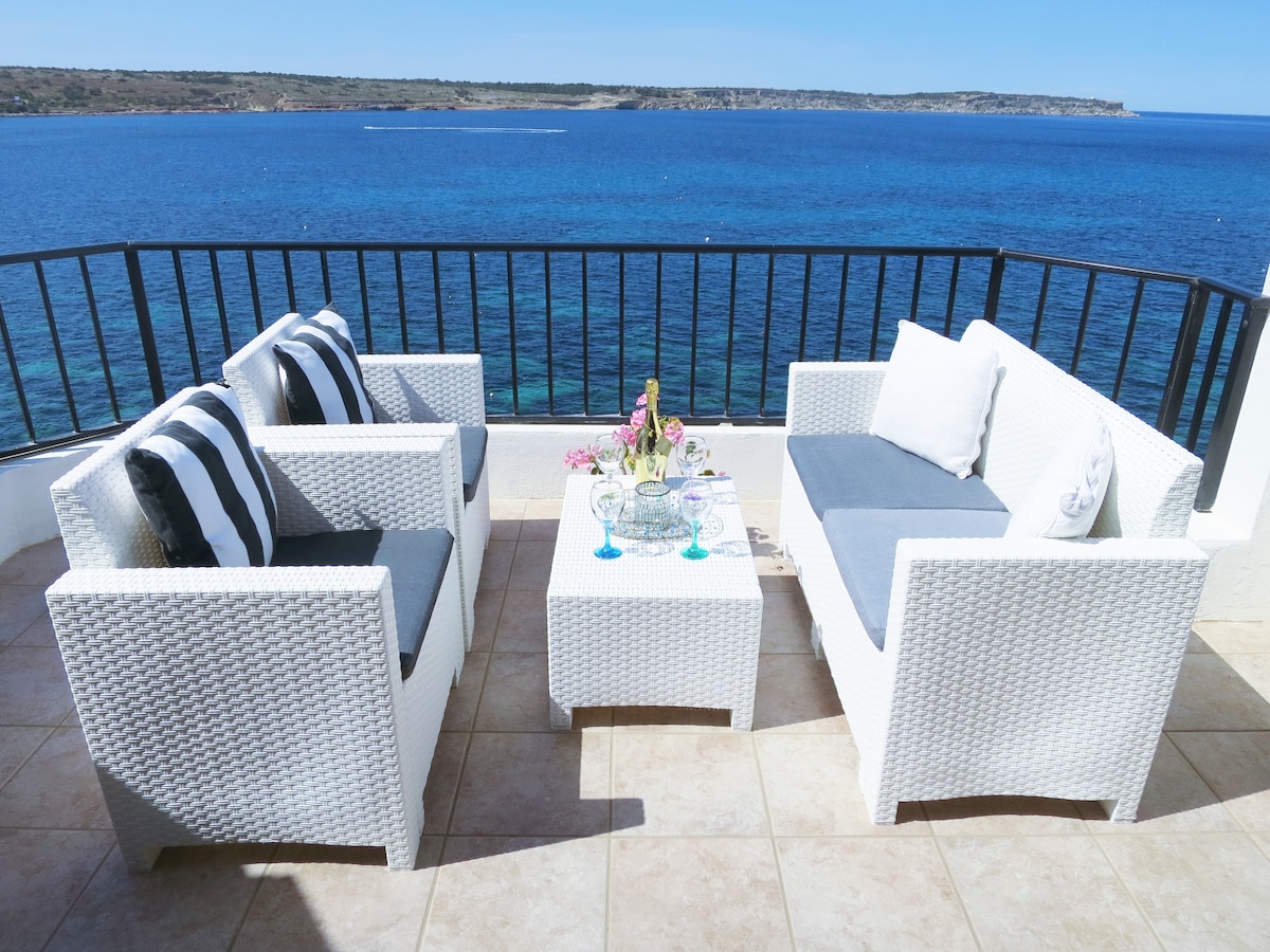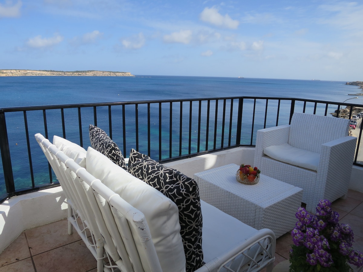 Nadmorski apartament z panoramicznym widokiem na morze w Mellieħa – dwie sypialnie dla rodziny lub pary. Zatoka Mellieha i plaża w pobliżu, jeden z ładniejszych widoków w tej okolicy.