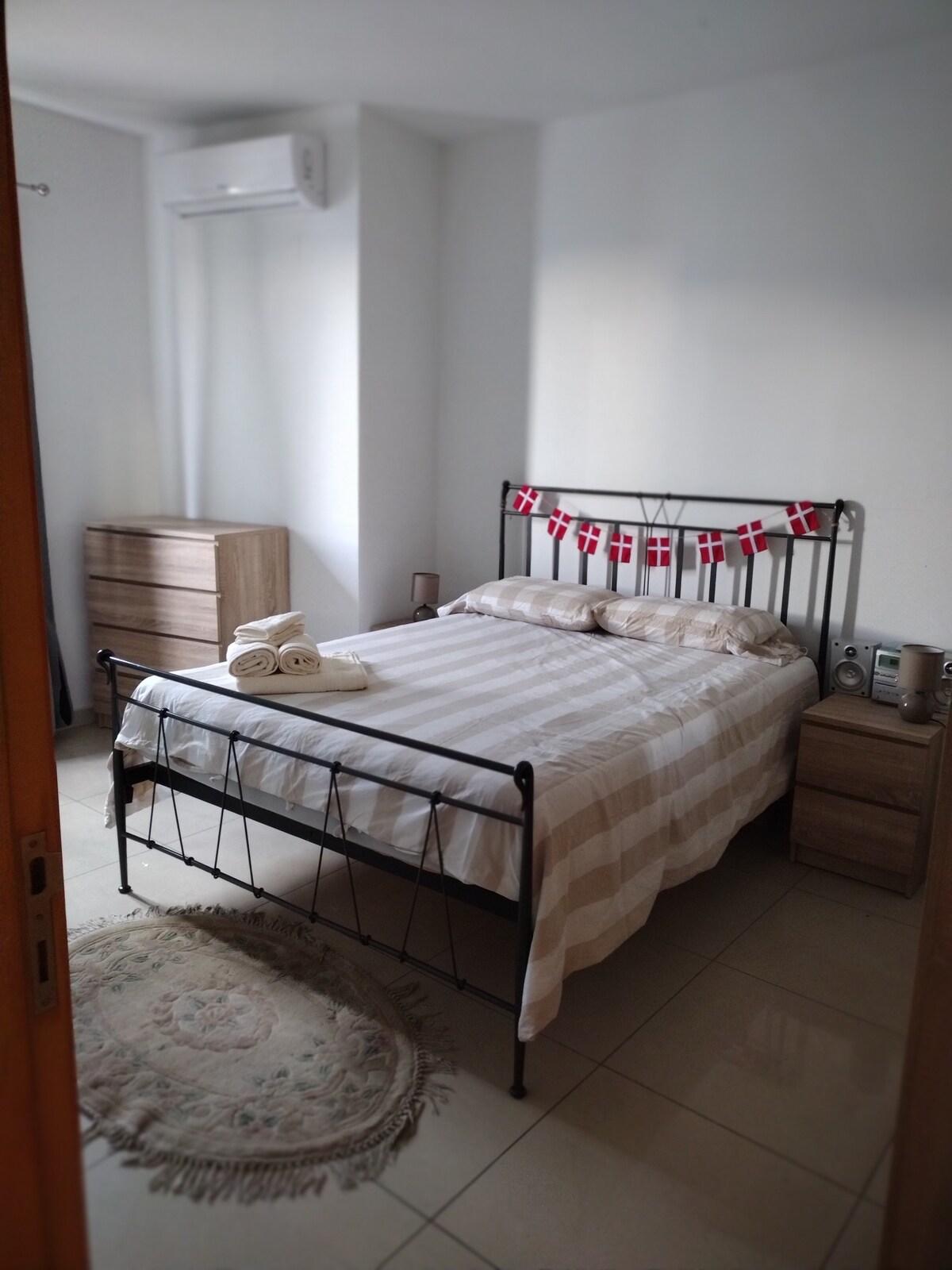 Jasny pokój z antresolą w spokojnym penthousie w Moście. Dobra lokalizacja w centrum Malty – łatwy dojazd do wybrzeża, Valletty i Mdiny. Dwie wersalki dla gości.