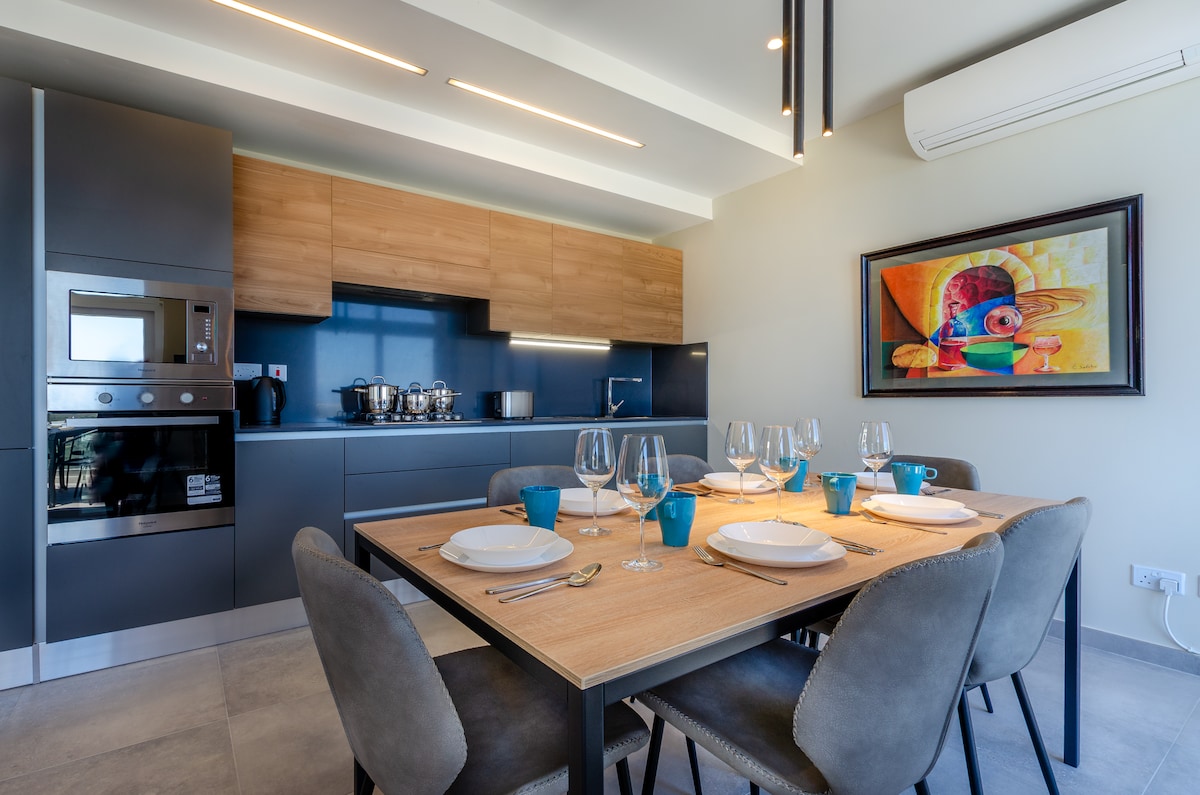 W Xagħrze wynajmuję ten apartament, gdy chcę poczuć się jak w domu, ale z widokami, które zapierają dech. Trzy sypialnie, nowoczesny design, a do tego wanna z hydromasażem na tarasie — wieczory tutaj są po prostu magiczne. Widać stąd całą wyspę, szczególnie pięknie o zachodzie słońca. Apartament jest świeży, czysty, wszystko działa. Kuchnia w pełni wyposażona, więc możesz gotować (a mleko kozie z lokalnego sklepu jest rewelacyjne). Xagħra to spokojne miejsce, ale blisko wszystkiego — do Nadur pięć minut, do plaż dziesięć. Idealne dla rodzin lub dwóch par. Jedyne, na co uważaj: schody na taras są strome, a wanna zajmuje sporo miejsca. Ale jeśli chcesz nowoczesny komfort z duszą Gozo, to jest to.