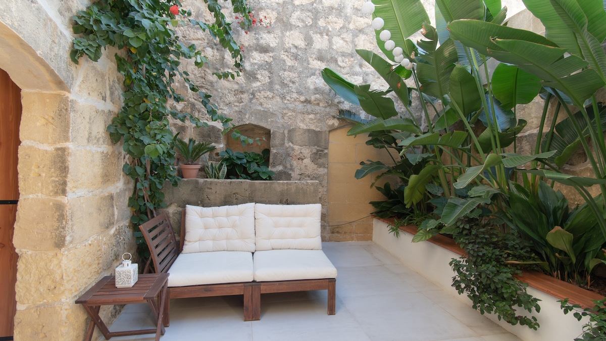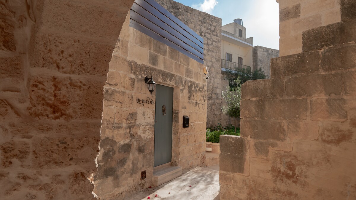 W Qali wynajmuję się te piękne tradycyjne farmhouse'y, a 'In-Nicca' to naprawdę coś wyjątkowego. Kamienne mury, drewniane belki, całkowicie odrestaurowane — czujesz się jak u siebie, tyle że na Gozo. Idealne dla pary lub małej rodziny. Mnie się tam spodobało przede wszystkim to, że jest blisko wszystkiego, a zarazem cicho i spokojnie. Gospodarze znają wyspę na wylot i zawsze doradzą, gdzie naprawdę warto pójść. Ogródek z widokami na wieś, taras do wieczornych piw — takie rzeczy liczą się w urlopie. Cena 599 EUR za noc to nie jest mało, ale za tę atmosferę i komfort warto.